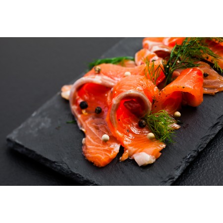 Grav'lax de saumon écossais, mariné aneth fraîche et baie rose de Madagascar